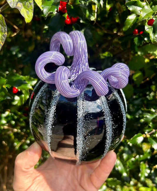 Purple Licorice Halloween Decor Hand Blown Glass Pumpkin and Centerpiece