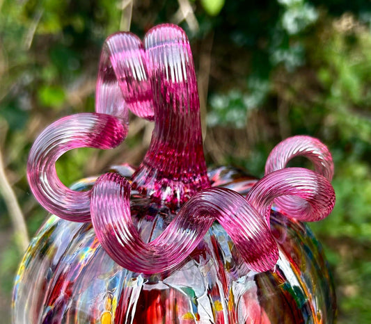 Sale!!! Ruby Rainbow Glass Pumpkin Gift and Centerpiece