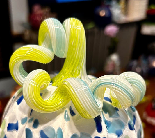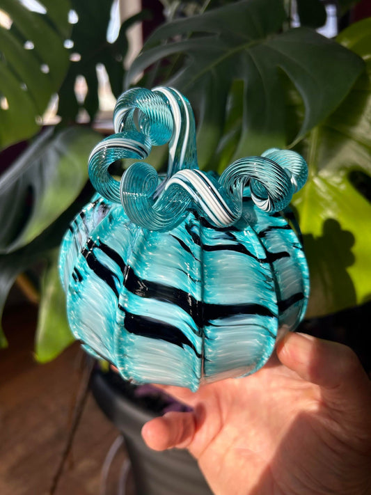Aqua Shadows Glass Pumpkin Gift and Centerpiece