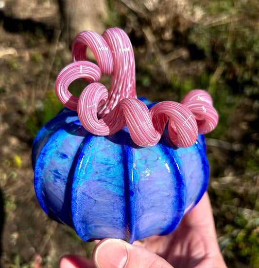Cobalt Curlyque with Dreamcatcher Glass Pumpkin Gift and Centerpiece