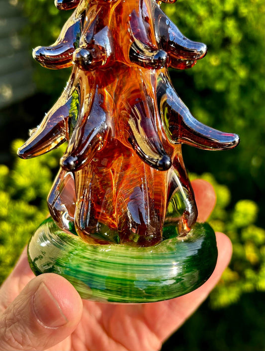 Ruby Violet Fade Ombre Glass Tree (signed by artist!) 6 1/2"