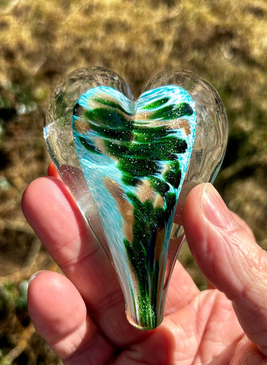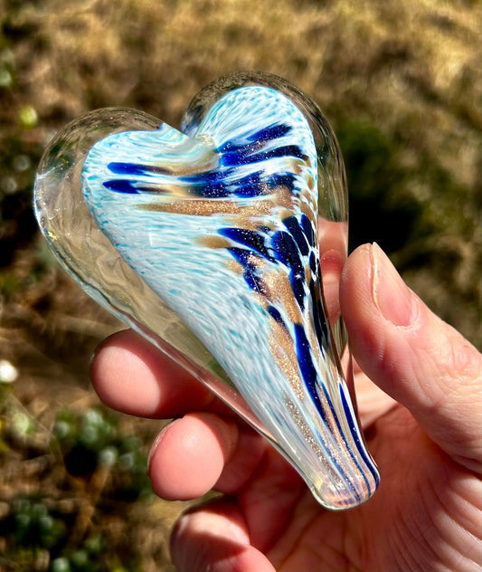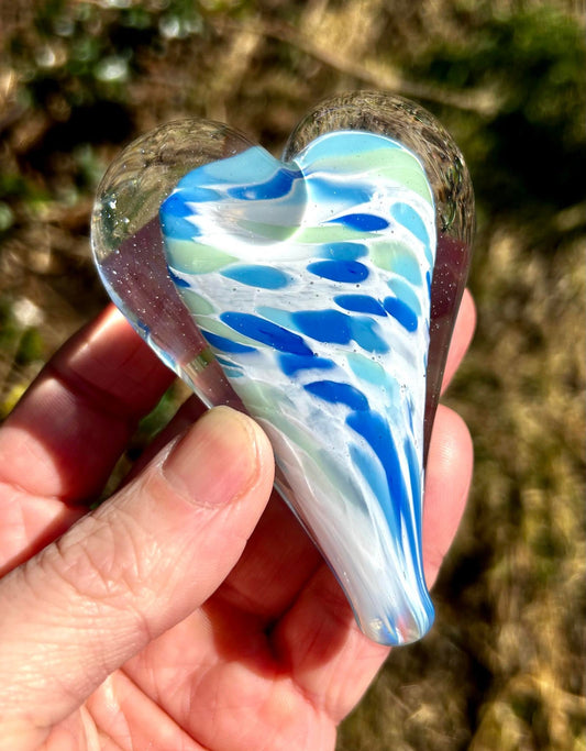 Shallow Waters Glass Heart with Black Velvet Gift Pouch 3 3/4"