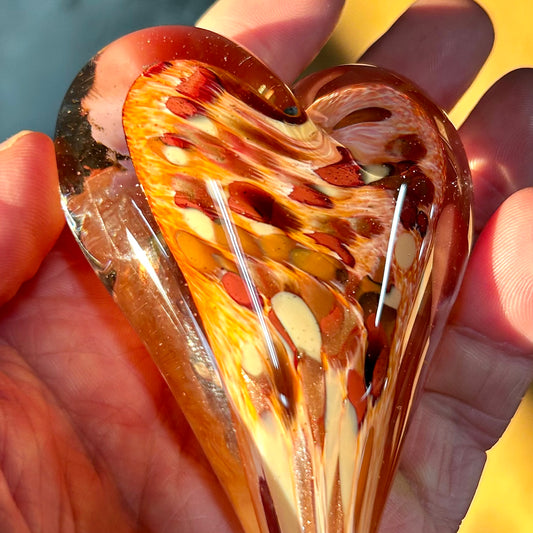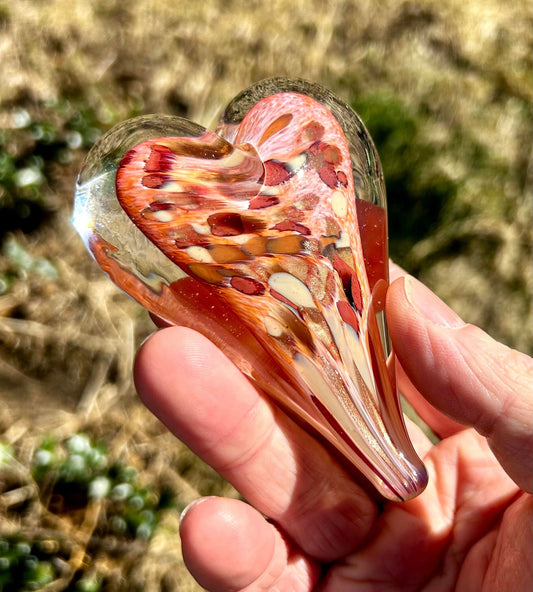 Peach Rosewood Glass Heart with Sparkling Aventurine Gold
