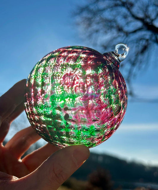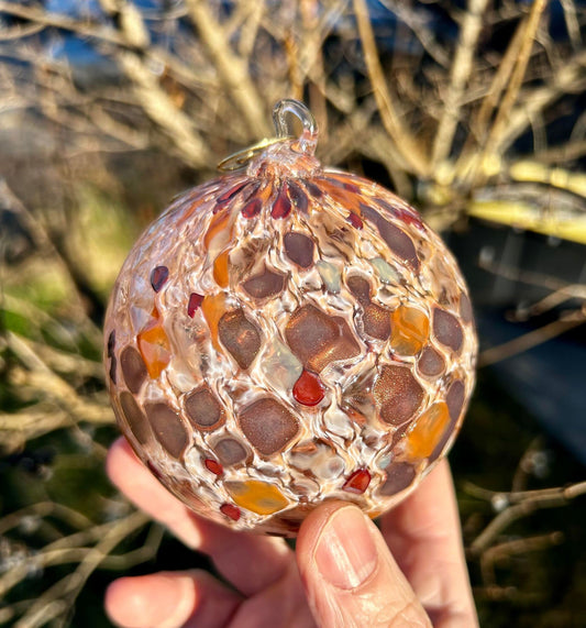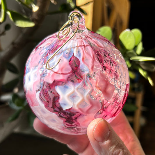 Peach Rosewood Pineapple Texture Glass Christmas 4" Ornament with 1 Golden Shepherd's Hooks and 1 Gift Box