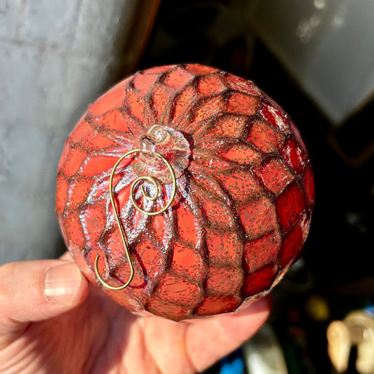 Metallic Coral Red Angel Lace Glass Ornament