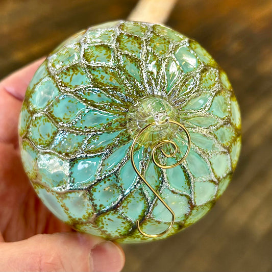NEW! 4" Pineapple Texture Glass Christmas Ornament with 1 Golden Shepherd's Hooks and 1 Storage Box