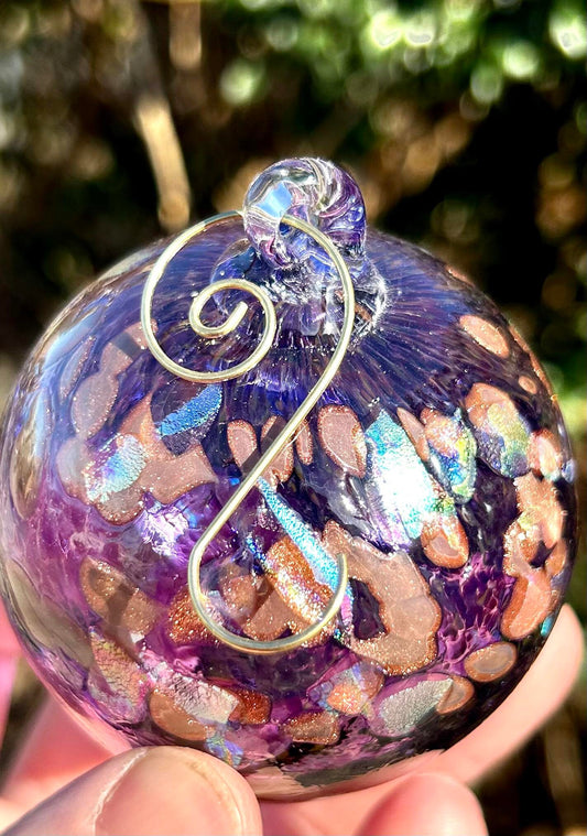 NEW! 3" Violet Golden Dichroic Glass Ornament comes with a golden shepherd's hook and clear gift box