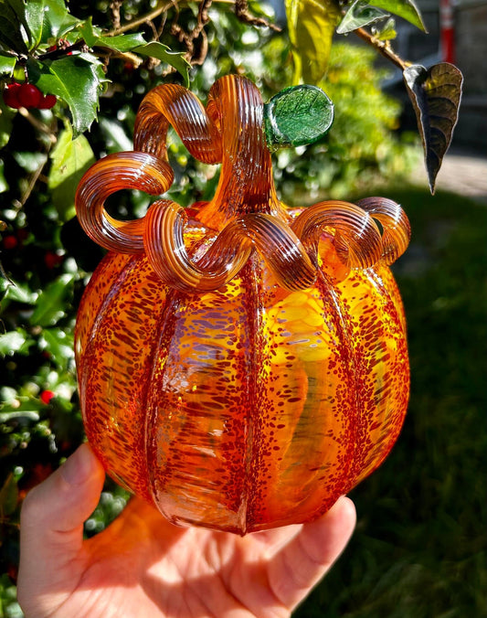 IRISH PIG TAIL Hand Blown Glass Pumpkin Centerpiece and Gift