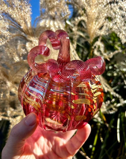 LITTLE PINK PIGEON Hand Blown Glass Pumpkin