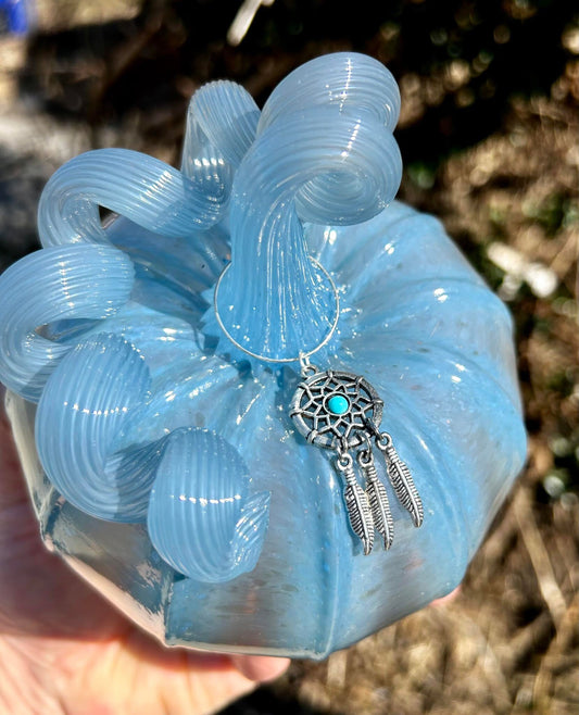 Blue Satin with a Dreamcatcher Glass Pumpkin Gift and Centerpiece