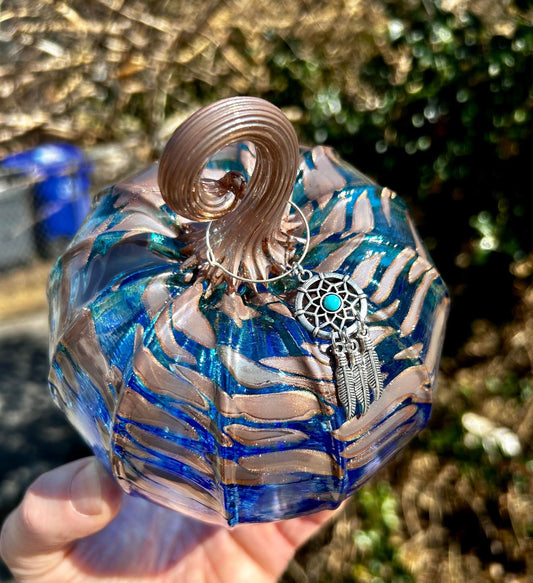 Cobalt Curlyque with Dreamcatcher Glass Pumpkin Gift and Centerpiece