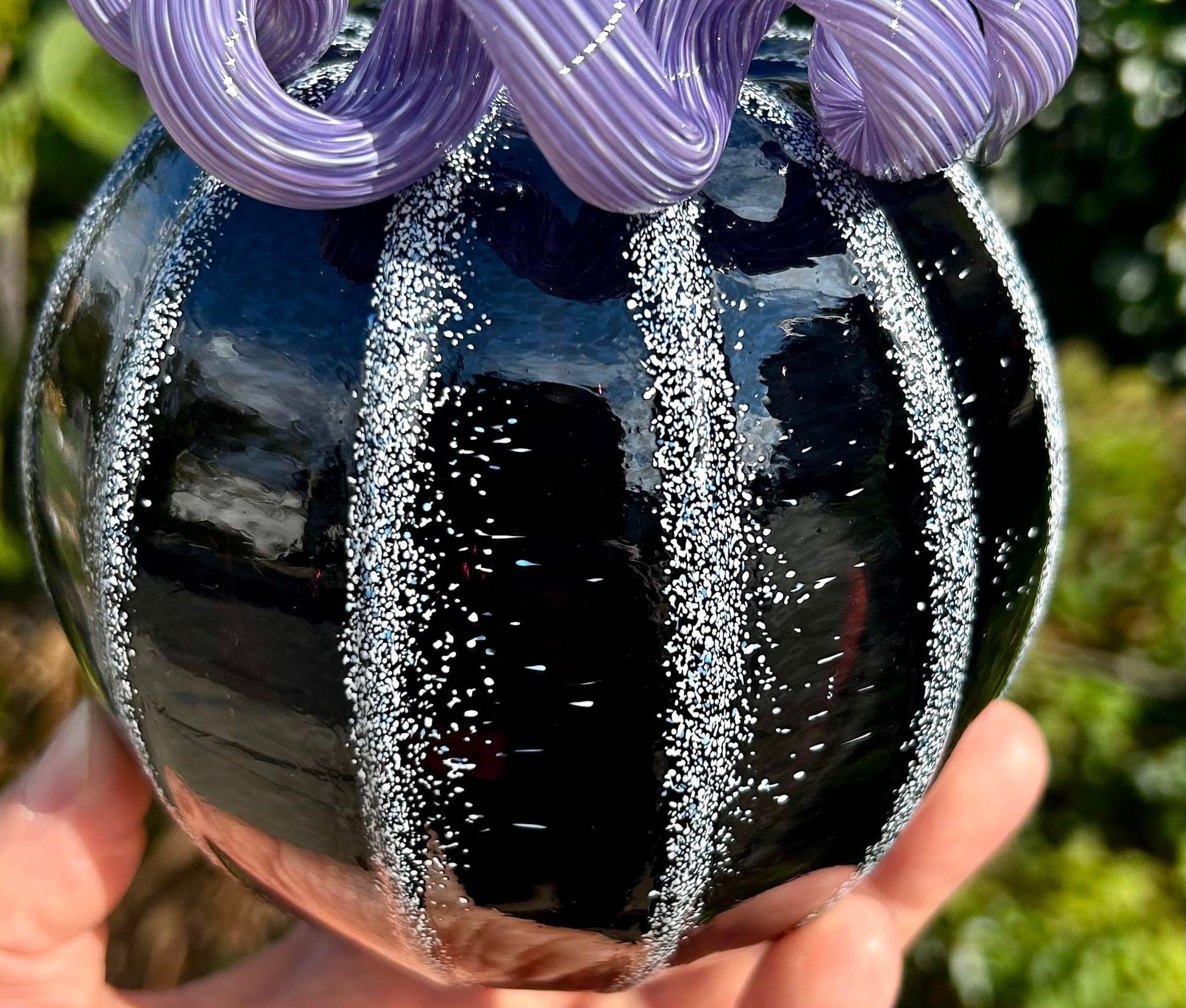 Purple Licorice Halloween Decor Hand Blown Glass Pumpkin and Centerpiece